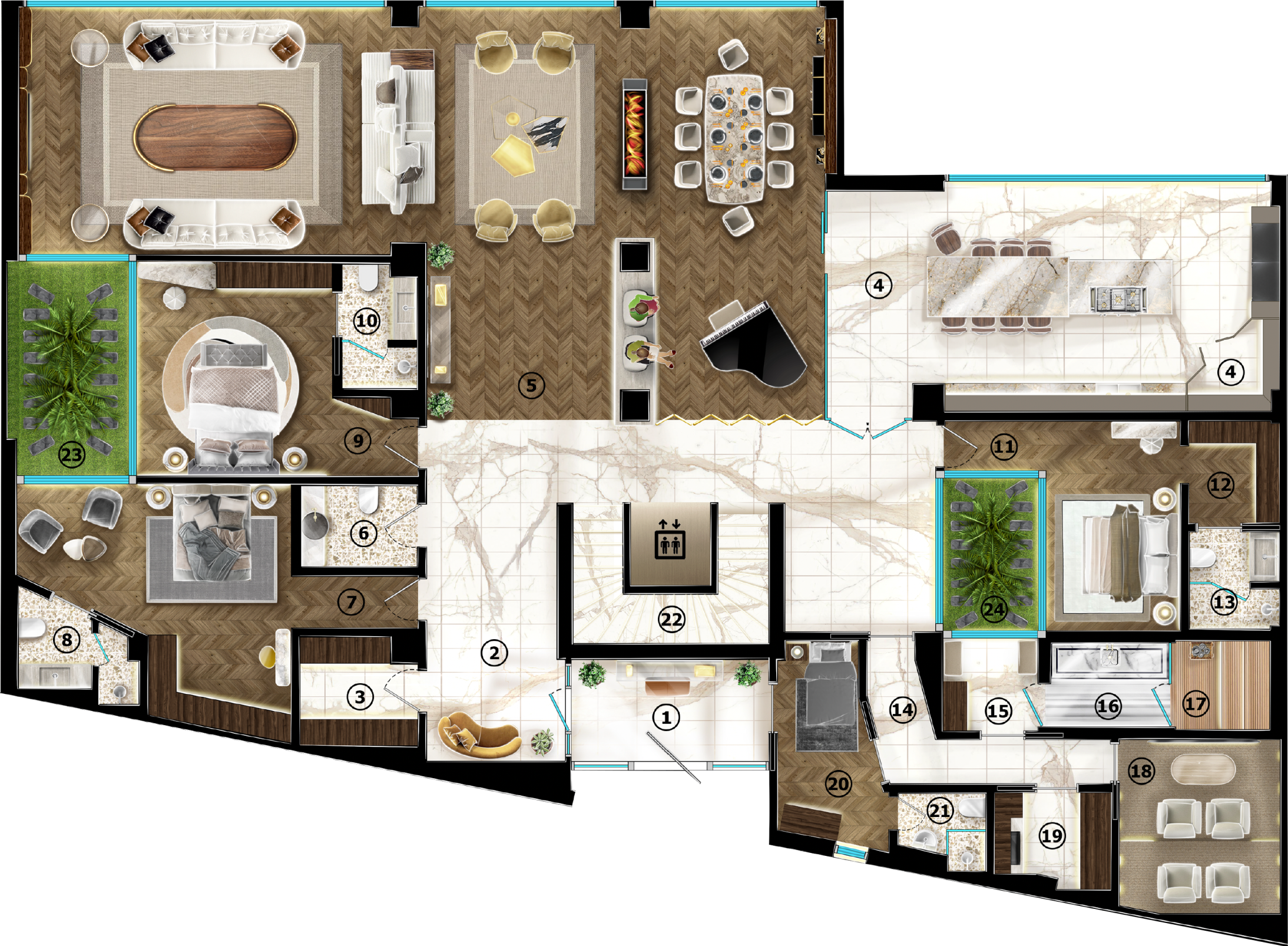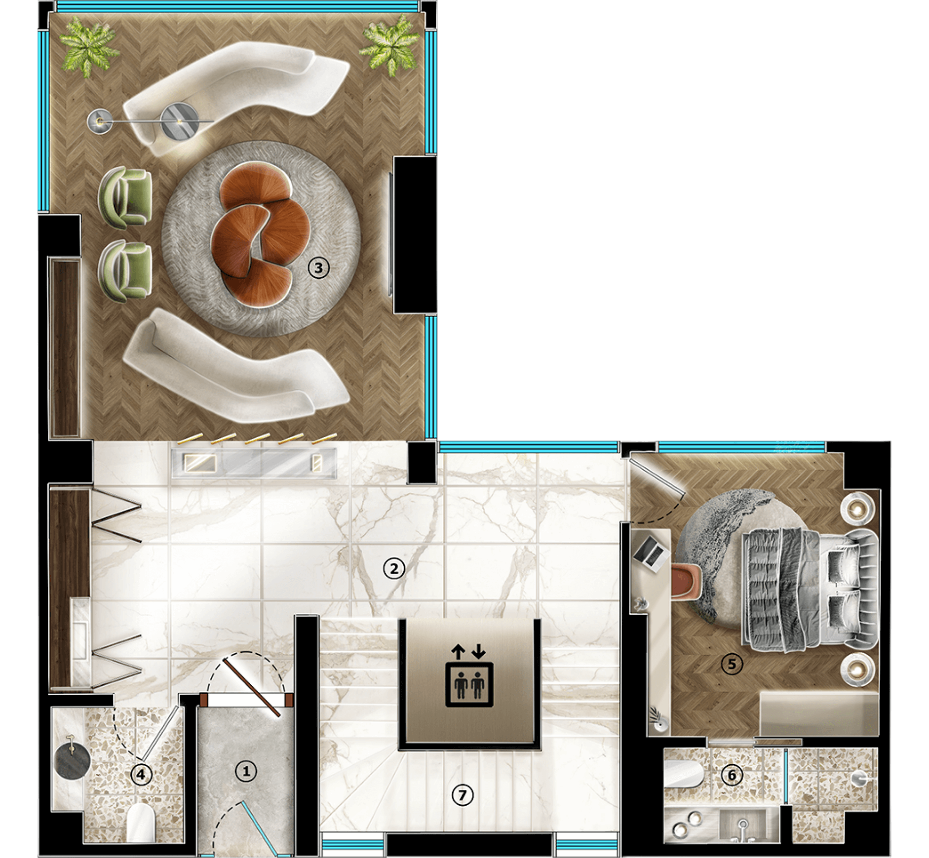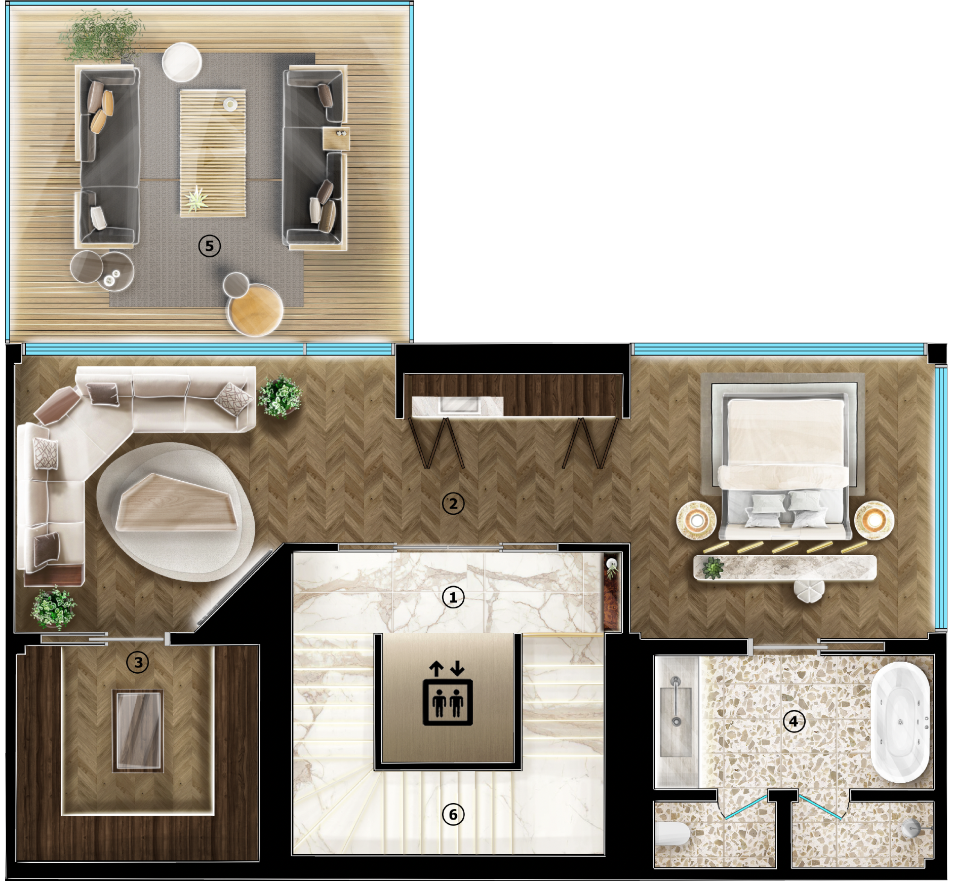 The interiors of the villas will be delivered unfinished. However, the estimated or typical villa plans for the interiors are as follows. You can design these areas as you wish, according to your own taste and needs. The projected plans are prepared to inspire you while personalizing your living spaces. Thus, you will have the opportunity to create your dream home.